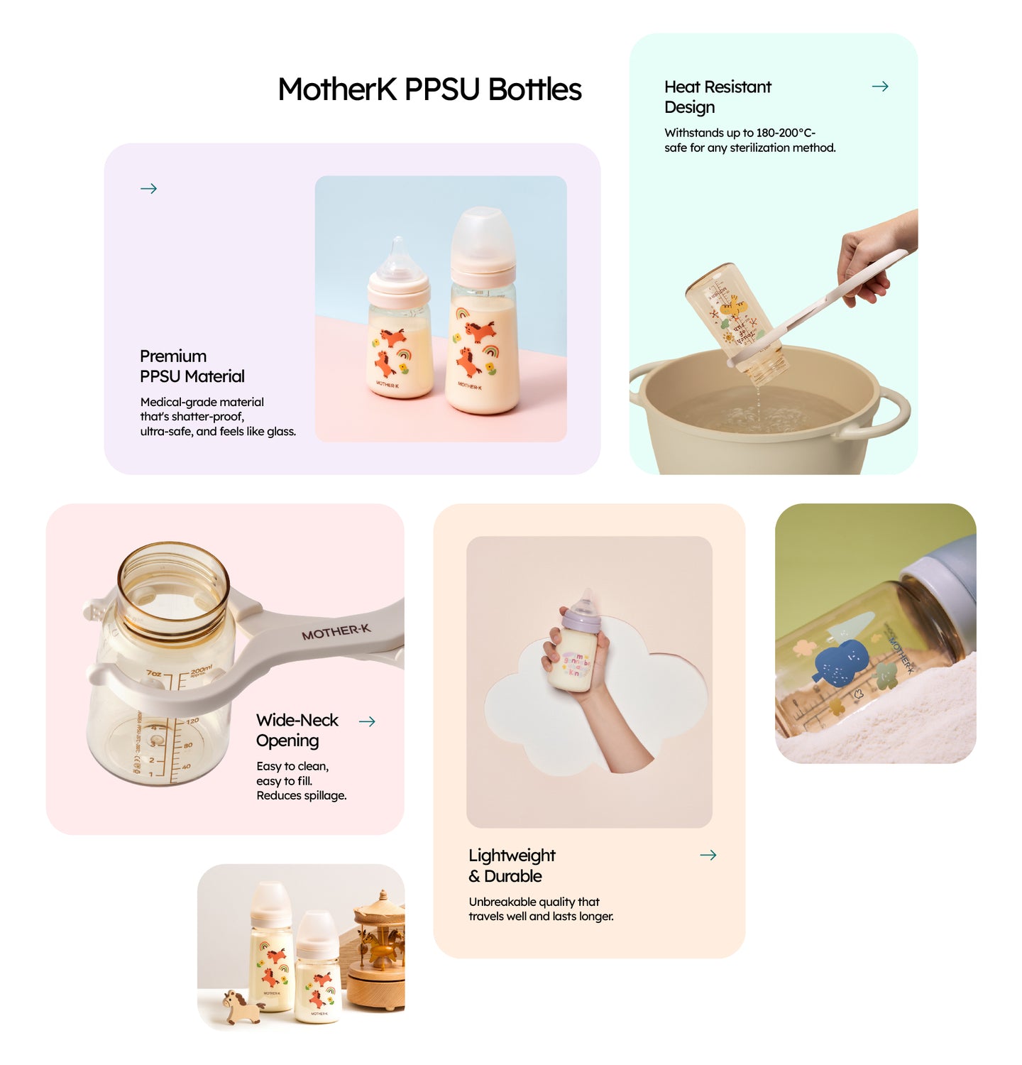 Premium PPSU Material – Lightweight, shatter-resistant, heat-safe up to 200°C